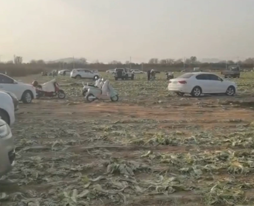 在网传的一则视频中,博主的镜头面向一片齐整的白菜地,并配文称“几百亩大白菜现在都不要了”“内蒙古欢迎您来捡白菜”。这条未经核实的视频被发布后,又经个别媒体和部分网友传播,让事发菜地的种植户李先生最终在11月6日上午见到了失控的一幕。