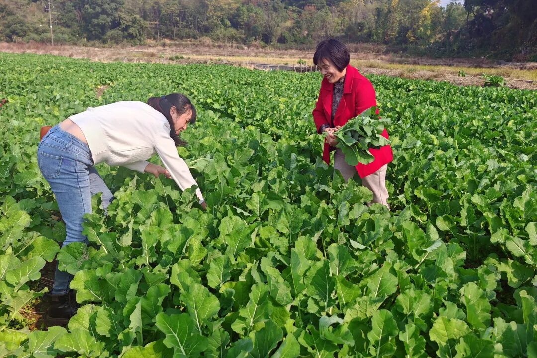 12月初,在日霞村的栽培基地里,连片的板蓝根油菜叶肉丰满、色泽鲜亮,在微风中如绿浪崎岖。栽培户正繁忙地进行采收,预备将新鲜的油菜供给商场。