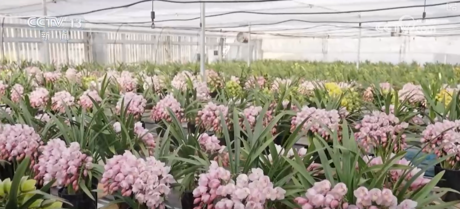 在周宁县的一家花卉栽培大棚里,3000多盆大花蕙兰花头硕大丰满、含苞待放。这批大花蕙兰花期能达3个多月,是2025年年宵花商场的“抢手货”。