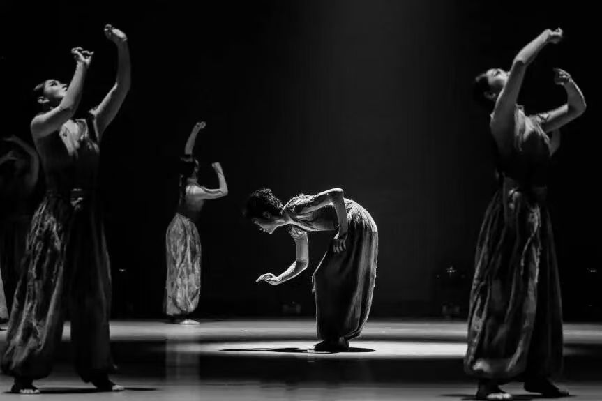 《再望这片黑土》挑选广为人知的“黑土地”作为情感意象的寄予,却没有逗留在单一的乡愁叙事,而是将其作为一种一直在场的“根基”存在,从“再望”这一当下视角动身,层层叙述人与土地之间彼此凝视的情感联合。著作中,身体语言是对“重力感”的自觉运营,舞者的重心向下,足部的顿、踢,并不是为了强化民间风格的“滋味”,而是让每一次着地都涵义着一次“栽种”,与看不见的根须暗自相连;舞者上身的动作则是在这种下沉基础上的延展与牵引,经过营造出一种“厚土崎岖”的视觉节奏,展现出一种“生命涌动”的情感感触。